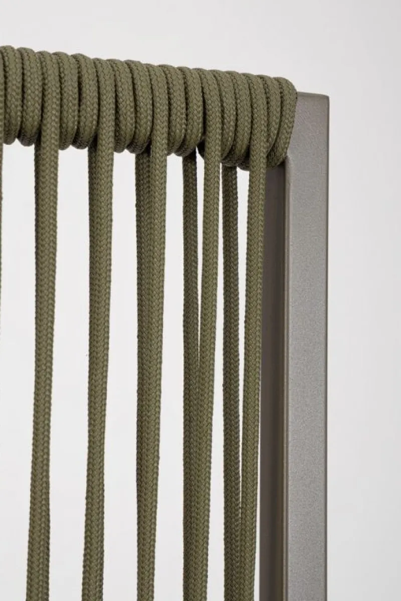 STRUTTURA IN ALLUMINIO VERNICIATO A POLVERE (POLIESTERE). INTRECCIO IN CORDA DI TEXTILENE CON IMBOTTITURA IN GOMMA NITRILICA. PIEDINI DA ASSEMBLARE.