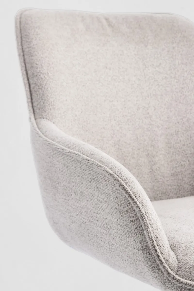 SEDUTA IN COMPENSATO CON IMBOTTITURA IN SCHIUMA POLIURETANICA. RIVESTIMENTO IN 100% POLIESTERE. GIREVOLE 360° CON MECCANISMO DI RITORNO. GAMBE IN ACCIAIO VERNICIATE A POLVERE EPOSSIDICA. GAMBE DA ASSEMBLARE.