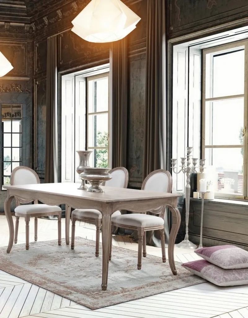 STRUTTURA IN LEGNO DI BETULLA. SEDUTA E SCHIENALE RIVESTITI IN TESSUTO (40% POLIESTERE, 30% COTONE E 30% LINO).
