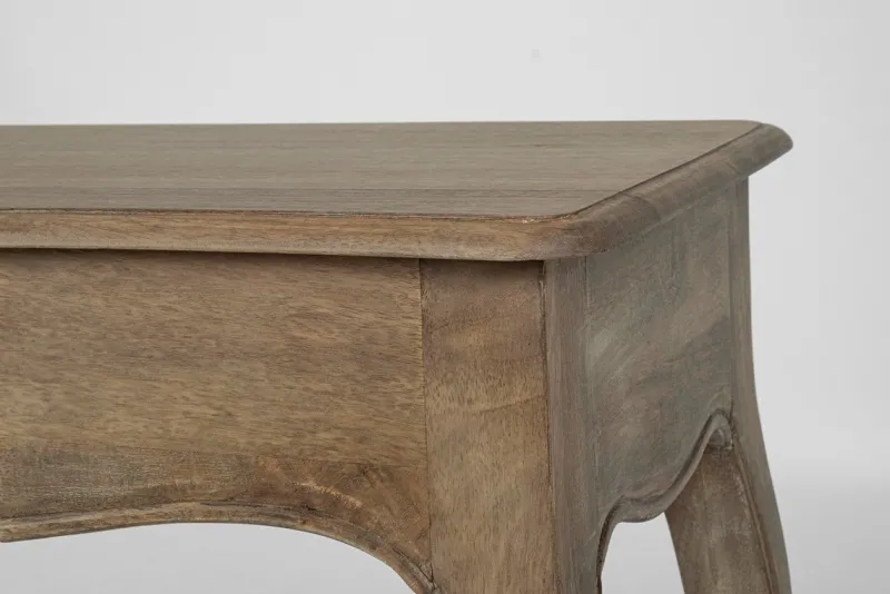 STRUTTURA IN LEGNO DI MANGO, FONDO CASSETTI IN MDF. FINITURA CON VERNICE A BASE D’ACQUA. MANIGLIE IN GHISA. GAMBE DA ASSEMBLARE.