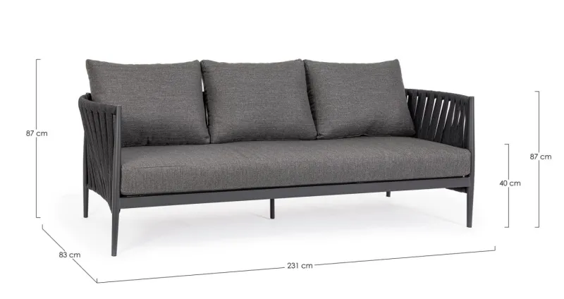Bizzotto DIVANO 3 POSTI ANTRACITE WG21- JACINTA