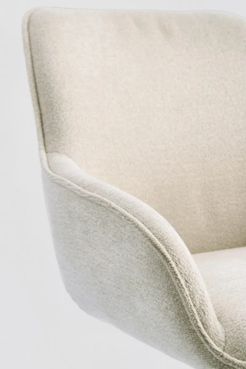 SEDUTA IN COMPENSATO CON IMBOTTITURA IN SCHIUMA POLIURETANICA. RIVESTIMENTO IN 100% POLIESTERE. GIREVOLE 360° CON MECCANISMO DI RITORNO. GAMBE IN ACCIAIO VERNICIATE A POLVERE EPOSSIDICA. GAMBE DA ASSEMBLARE.