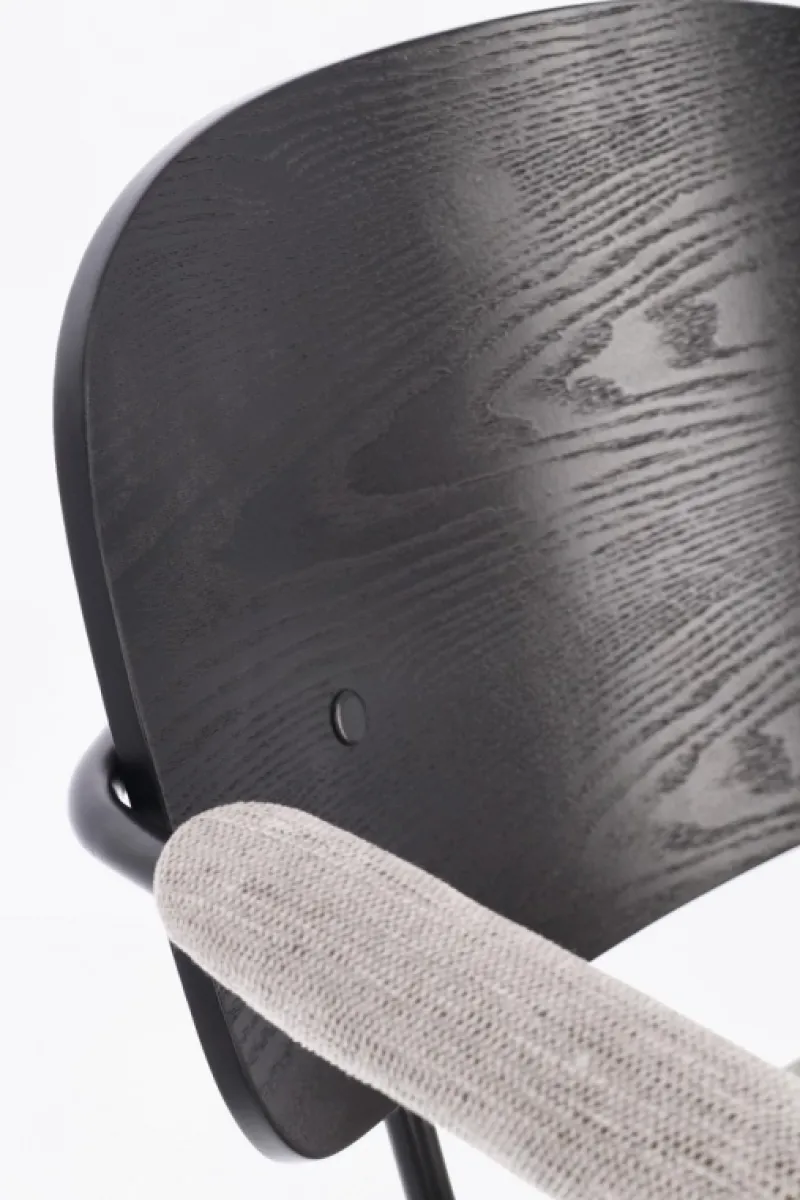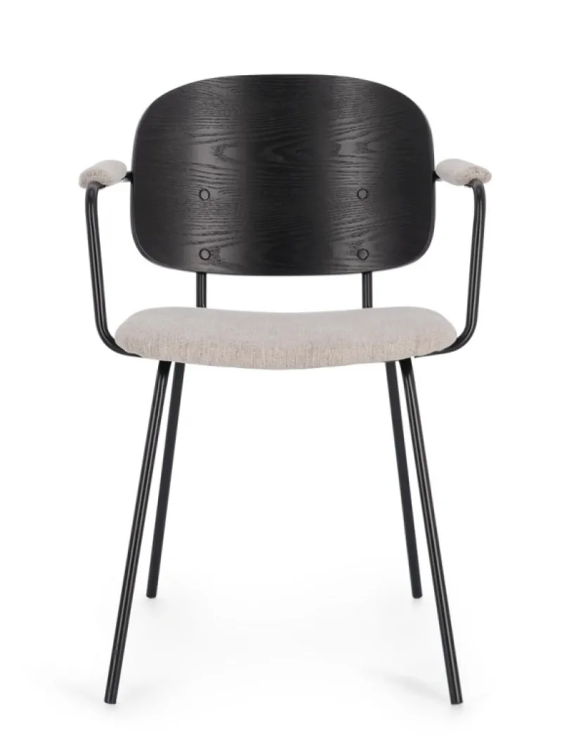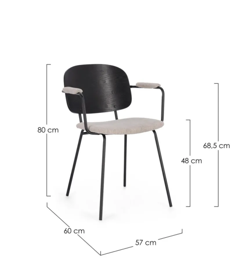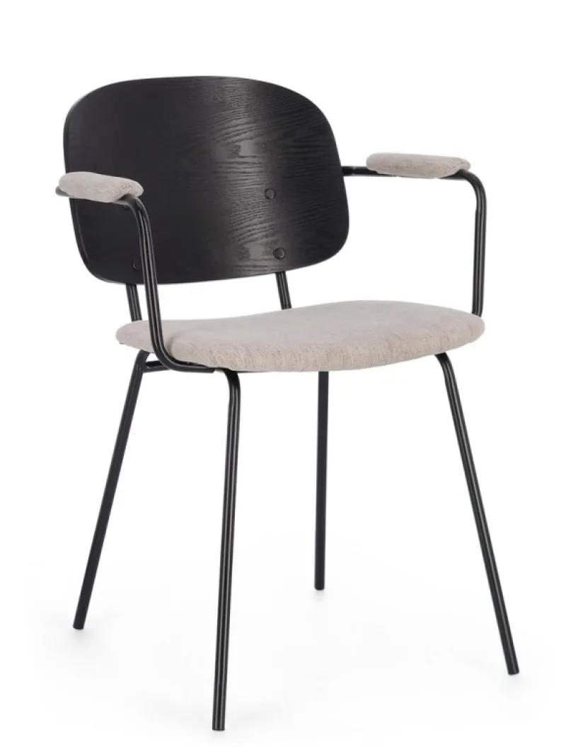STRUTTURA IN ACCIAIO VERNICIATA A POLVERE EPOSSIDICA. SCHIENALE IN COMPENSATO IMPIALLACCIATO LEGNO DI PIOPPO. SEDUTA E BRACCIOLI IN COMPENSATO CON RIVESTIMENTO IN 100% POLIESTERE. DA ASSEMBLARE.
