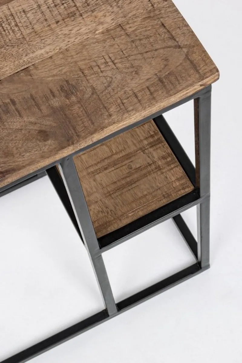 STRUTTURA IN ACCIAIO VERNICIATA A POLVERE EPOSSIDICA, PIANO IN LEGNO DI MANGO CON FINITURA A BASE D’ACQUA.