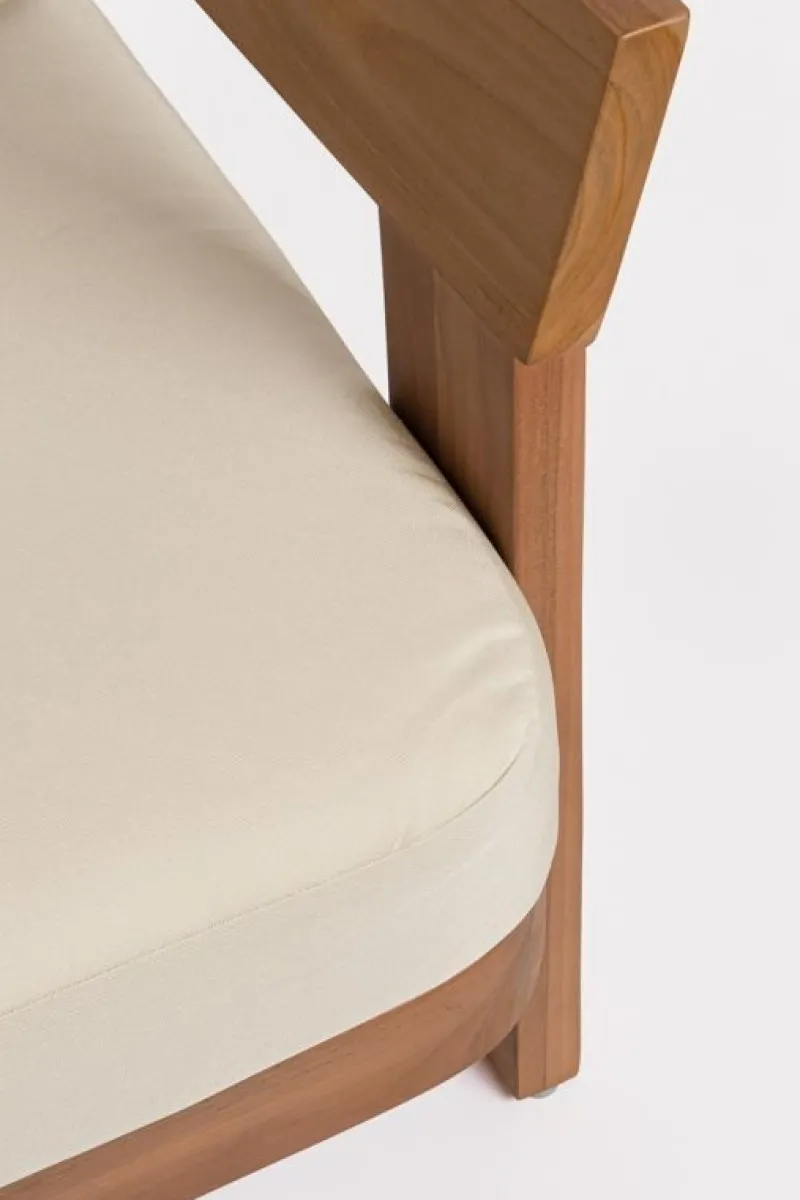 STRUTTURA IN IN TEAK – SVLK (LEGNO CERTIFICATO PROVENIENTE DA FORESTE SOSTENIBILI), FINITURA FINALE A BASE D’ACQUA. CUSCINI SFODERABILI IN TESSUTO IDROREPELLENTE SUNPROOF OLEFIN (100%POLYPROPYLENE). IL TEAK È UN LEGNO RICCO DI OLII. CON IL PASSARE DEL TEMPO, QUESTI OLII, PER UN PROCESSO NATURALE, RISALGONO IN SUPERFICIE E POSSONO MACCHIARE EVENTUALI CUSCINI A DIRETTO CONTATTO CON IL LEGNO.