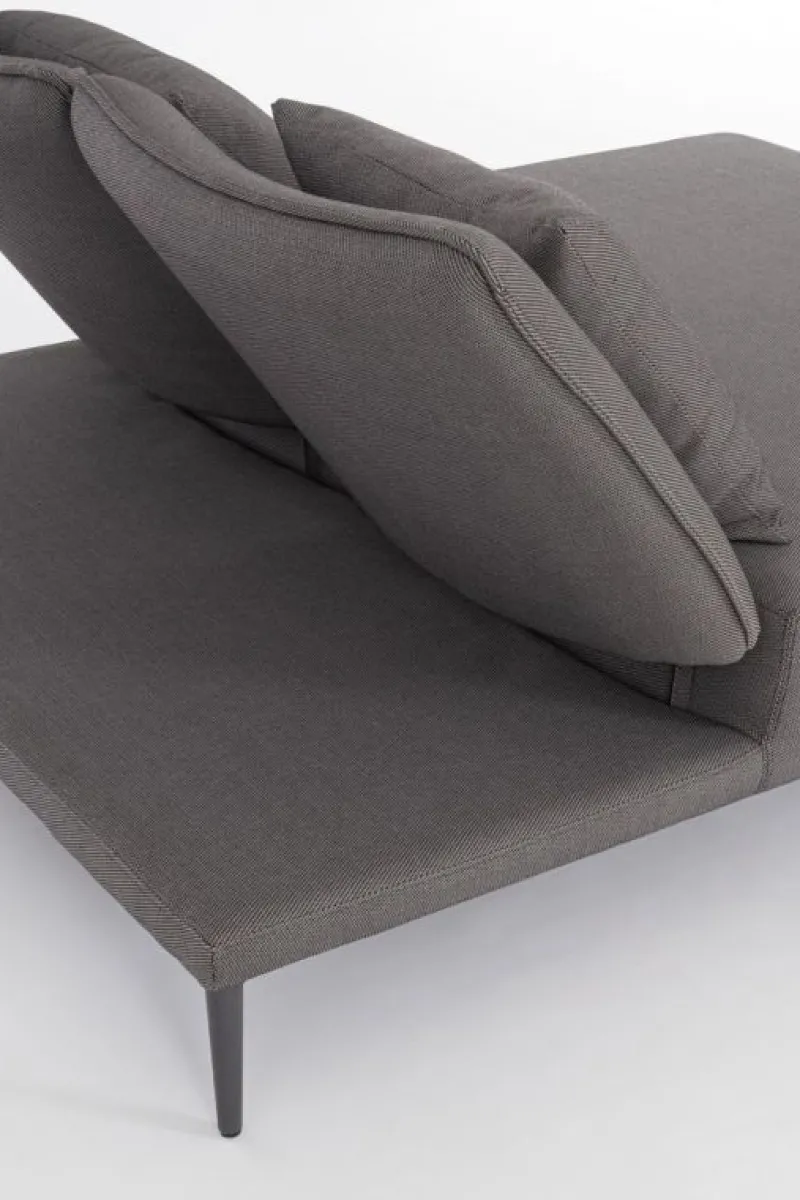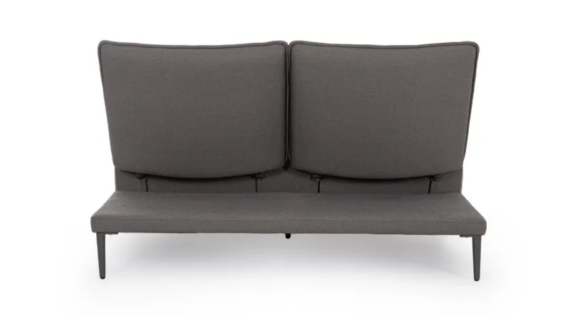 STRUTTURA IN ALLUMINIO. SEDUTA E SCHIENALE (RECLINABILE IN LIBERA POSIZIONE) NON SFODERABILI IN TESSUTO PER ESTERNO IN OLEFIN (100% POLIPROPILENE, 285GR/M2), IDROREPELLENTE E RESISTENTE AI RAGGI UV (GRADO 7), IMPERMEABILIZZATO INTERNAMENTE CON RIVESTIMENTO IN TESSUTO (POLIURETANO). IMBOTTITURA IN SCHIUMA POLIURETANICA, DENSITA’ 40KG/M3. INCLUSO DI