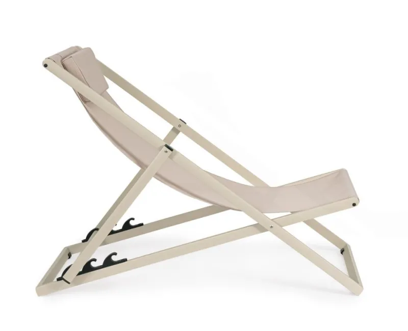 STRUTTURA IN ALLUMINIO, VERNICIATO A POLVERE (POLIESTERE). SEDUTA E SCHIENALE IN TEXTILENE 2X1 (610G/M2). FERRAMENTA IN ACCIAIO GALVANIZZATO. TRE POSIZIONI.