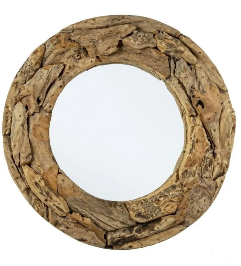 RADICI DI TEAK CON FINITURA RUSTICA NATURALE E VETRO. LE FORME ORIGINALI CREATE DAL LEGNO SONO SOLO INDICATIVE, TUTTI I PRODOTTI SARANNO DIVERSI L’UNO DALL’ALTRO. MISURA SPECCHIO:Ø63