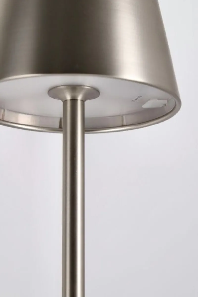METALLO TRATTATO CON ELETTROPLACCATURA, LAMPADA LED, BATTERIA RICARICABILE CON CAVO USB 1 MT INCLUSO. TASTO ON/OFF TOUCH. PER USO INTERNO ED ESTERNO, IP54.