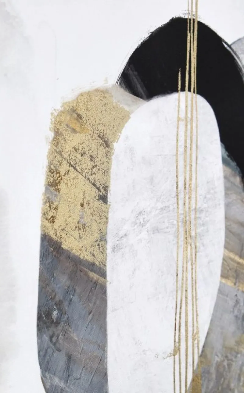 STAMPA SU TELA CON APPLICAZIONI FOGLI DORATI. STRUTTURA IN LEGNO DI PINO. CORNICE IN PLASTICA.