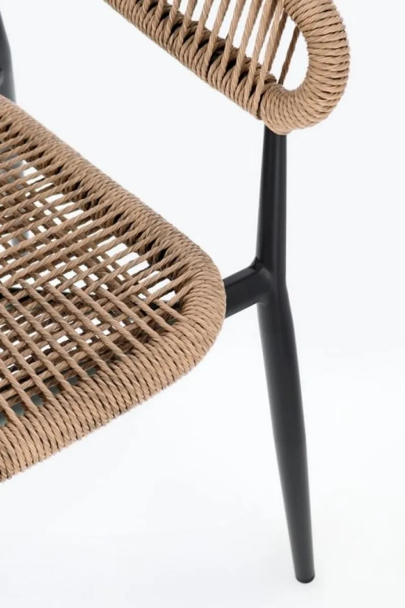 STRUTTURA IN ALLUMINIO, VERNICIATA A POLVERE (POLIESTERE), INTRECCIO IN FIBRA SINTETICA (TWISTED). IMPILABILE. IMBALLO SENZA CARTONE.