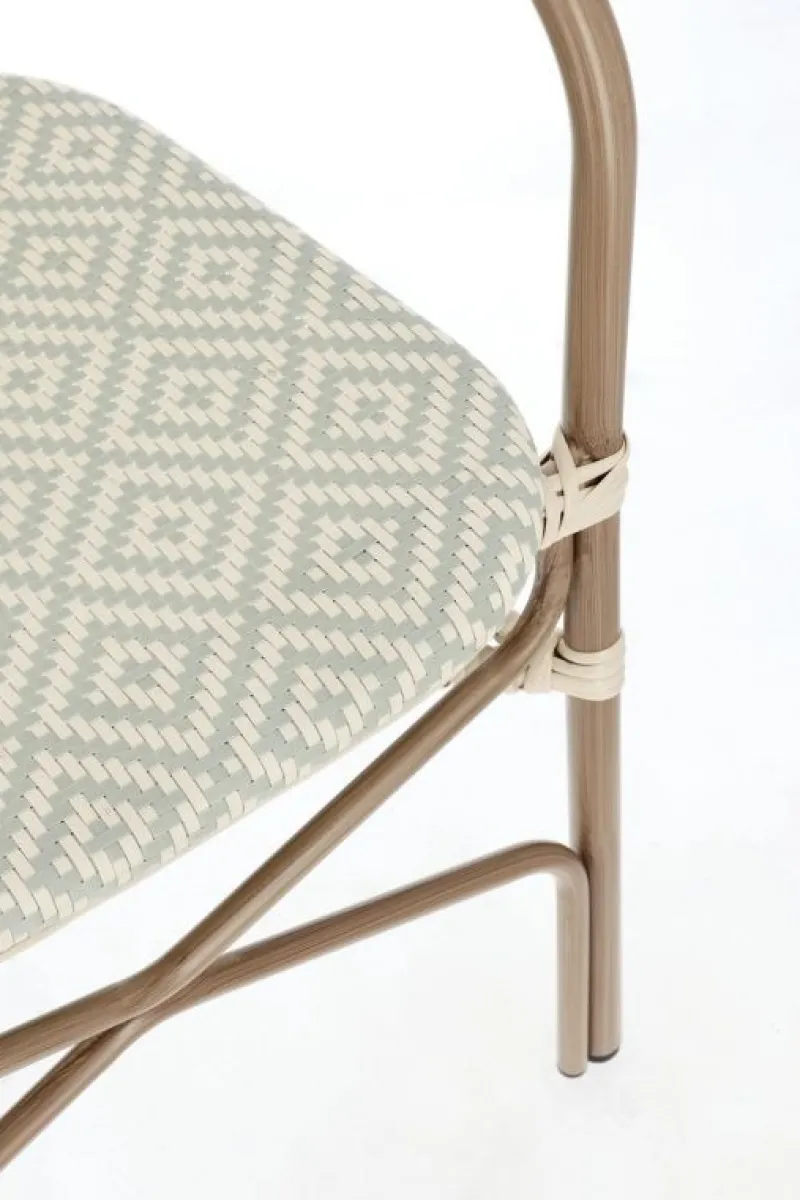 STRUTTURA IN ALLUMINIO VERNICIATA A POLVERE (POLIESTERE), EFFETTO NATURALE. SEDUTA E SCHIENALE IN TEXTILENE. IMPILABILE. IMBALLO SENZA CARTONE.