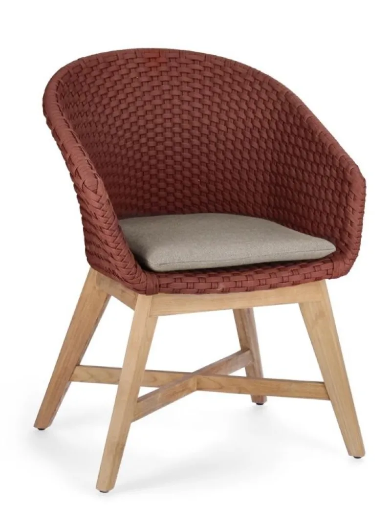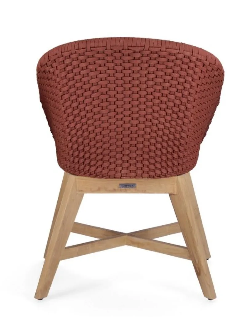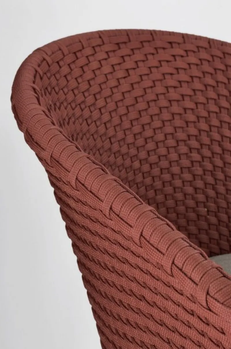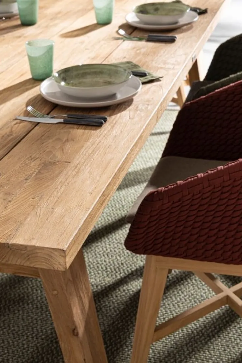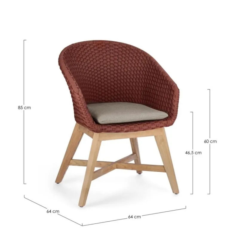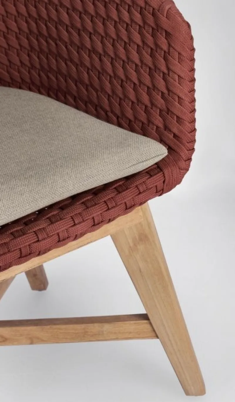 SEDUTA CON STRUTTURA IN ALLUMINIO VERNICIATA A POLVERE (POLIESTERE). INTRECCIO IN CORDA OLEFIN (100% POLIPROPILENE). CUSCINO SEDUTA SFODERABILE IN TESSUTO IDROREPELLENTE SUNPROOF OLEFIN (100% POLIPROPILENE). GAMBE IN TEAK – SVLK (LEGNO CERTIFICATO PROVENIENTE DA FORESTE SOSTENIBILI). VITERIA IN ACCIAIO GALVANIZZATO. GAMBE DA ASSEMBLARE. ATTENZIONE: PRIMA DI PROCEDERE AL MONTAGGIO, ASSICURARSI CHE LA NUMERAZIONE SEDUTA-GAMBE COINCIDA.