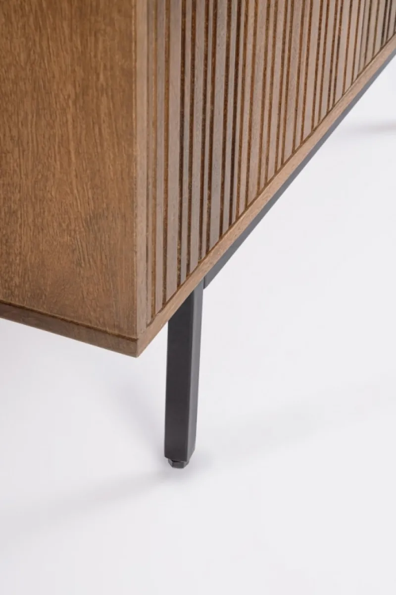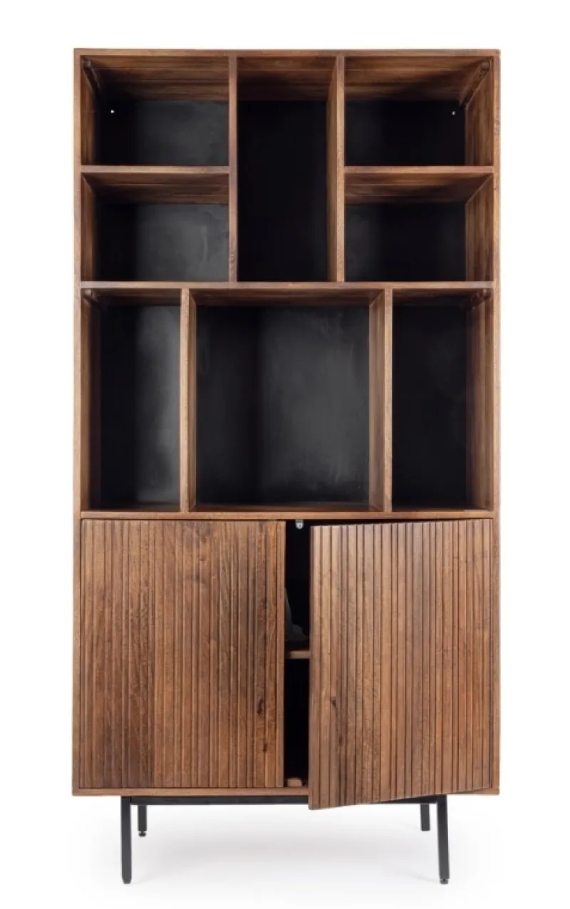 STRUTTURA IN LEGNO DI MANGO. FINITURA CON VERNICE A BASE DI NITROCELLULOSA. SCHIENALI IN MDF. VANO PORTA COMPRENSIVO DI MENSOLA. GAMBE IN ACCIAIO VERNICIATO A POLVERE EPOSSIDICA. GAMBE DA ASSEMBLARE.