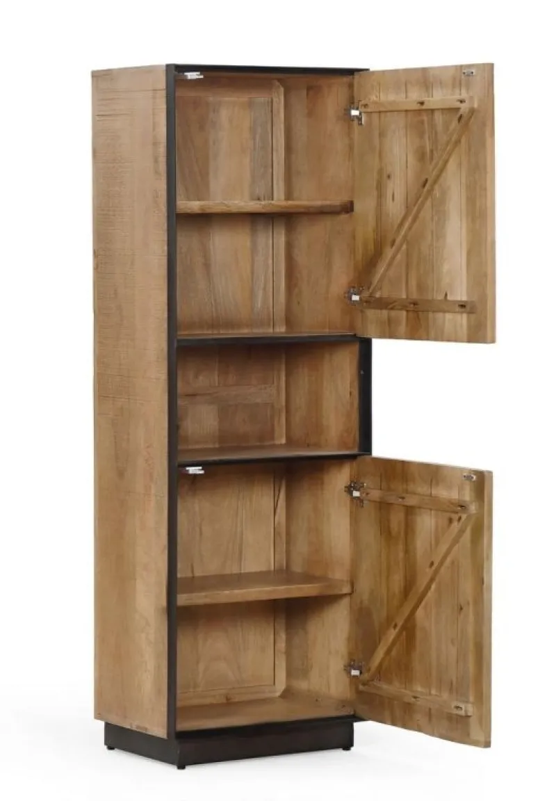 STRUTTURA IN LEGNO DI MANGO, FINITURA FINALE CON VERNICE A BASE D’ACQUA. PROFILO FRONTALE E GAMBE IN ACCIAIO VERNICIATO A POLVERE EPOSSIDICA. ANTE CON CERNIERE CON CHIUSURA AMMORTIZZATA. VANO PORTA COMPRENSIVO DI MENSOLA.