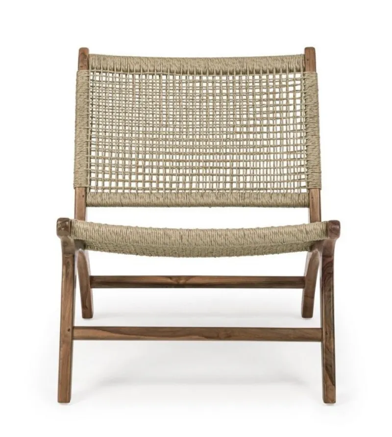 STRUTTURA IN LEGNO TEAK, SEDUTA E SCHIENALE CON INTRECCIO IN FIBRA SINTETICA (VIRO). FINITURA CON VERNICE A BASE D’ACQUA. SI RACCOMANDA DI NON ESPORRE L’ARTICOLO ALLA LUCE DIRETTA DEL SOLE ED ALLE INTEMPERIE. IMBALLO SENZA CARTONE.