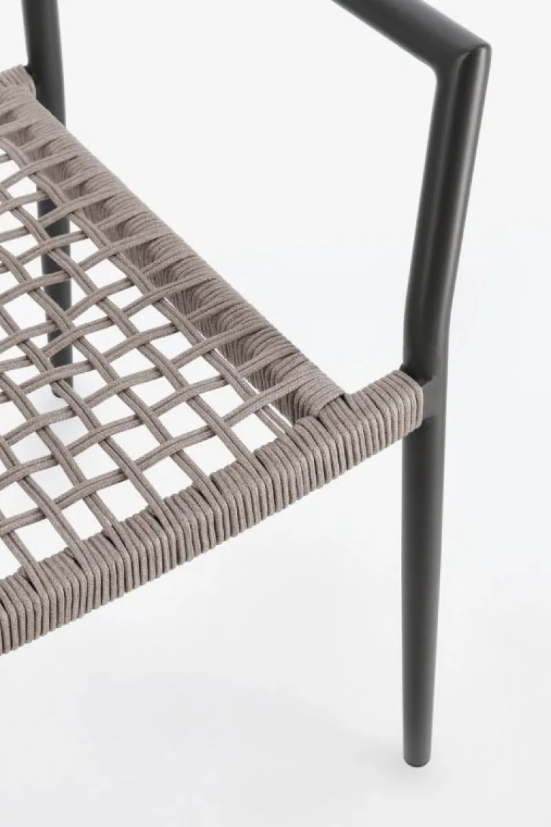 STRUTTURA IN ALLUMINIO VERNICIATA A POLVERE (POLIESTERE). INTRECCIO PER ESTERNO IN CORDA POLIESTERE. IMBALLO SENZA CARTONE.