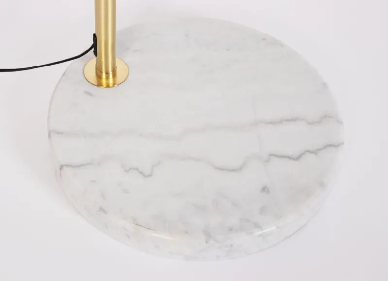 STRUTTURA IN METALLO FINITURA OTTONE LUCIDO. PARALUME IN METALLO FINITURA OTTONE LUCIDO, DIAM. 32 CM. BASE IN MARMO BIANCO, DIAM. 45 CM. LAMP: E27 MAX 60W, E27 11W COMP. FLUOR. INTEGR. RISP. EN., E27 42W ALOG. RISP. EN. LAMPADINA NON INCLUSA. LUNGHEZZA CAVO NERO: 1,8 MT. DISTANZA TRA LAMPADA E INTERRUTTORE: 100 CM. IP20. DA ASSEMBLARE.