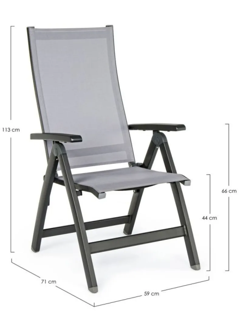 Outlet Bizzotto POLTRONA RECLINABILE IN ALLUMINIO PIEGHEVOLE ANTRACITE – CRUISE