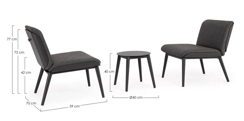 Outlet Bizzotto SALOTTO IN ALLUMINIO ANTRACITE WG21 – ISABELA