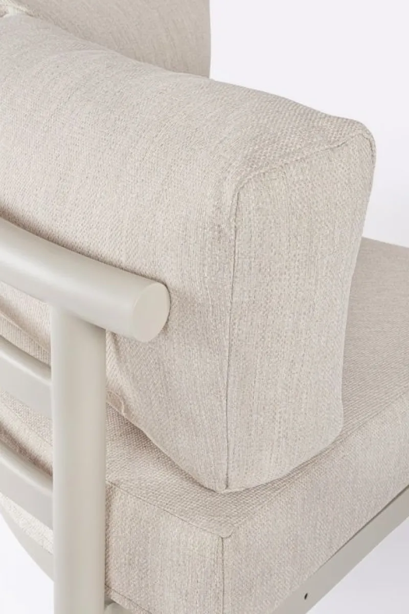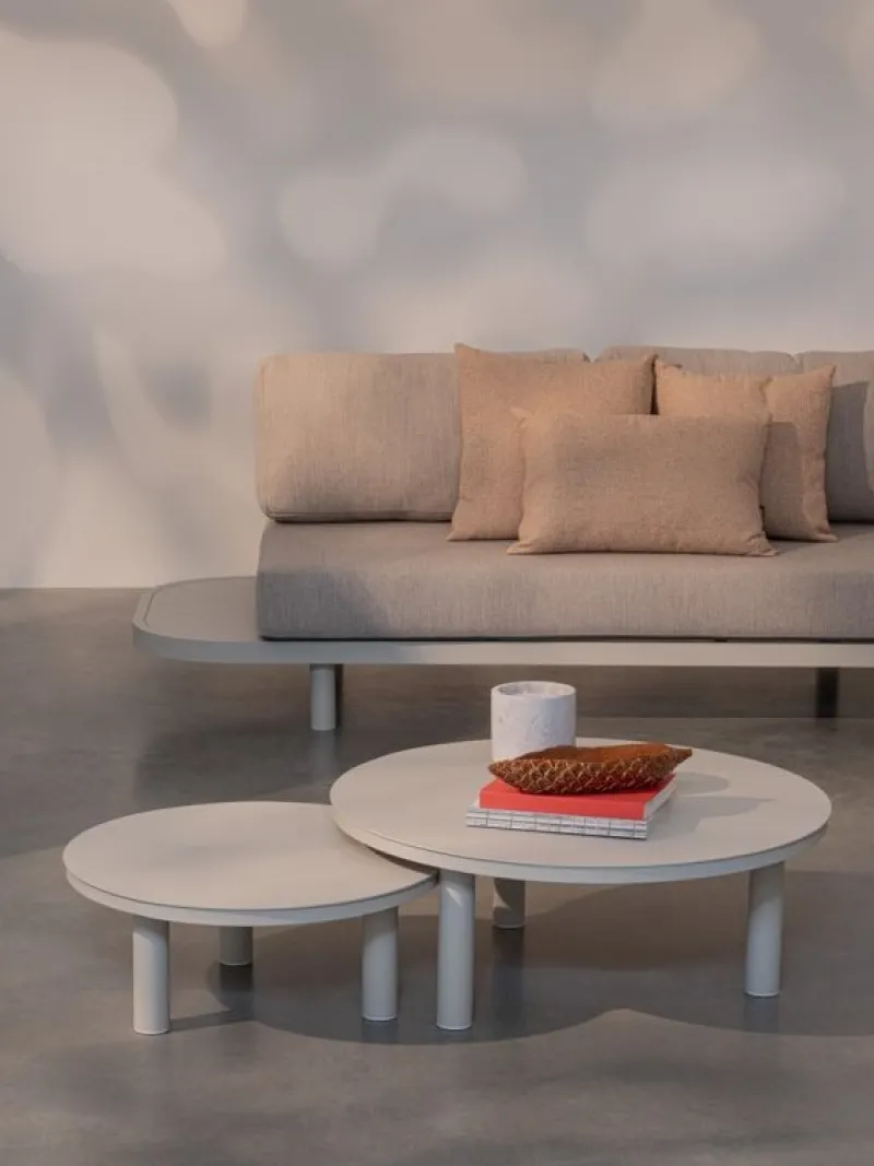 STRUTTURA IN ALLUMINIO VERNICIATO A POLVERE (POLIESTERE). CUSCINI SEDUTA E SCHIENALE SFODERABILI IN TESSUTO IDROREPELLENTE OLEFIN (100% POLIPROPILENE). PIEDINI REGOLABILI. GAMBE ANGOLARE E TAVOLINO (VITERIA IN ACCIAIO INOSSIDABILE) DA ASSEMBLARE.