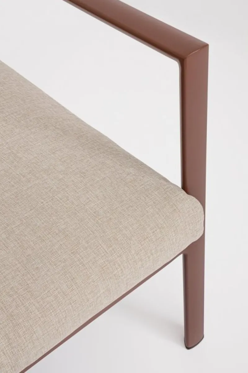 STRUTTURA IN ALLUMINIO, VERNICIATO A POLVERE (POLIESTERE). SEDUTA E SCHIENALE IN TEXTILENE 1X1. CUSCINI SFODERABILI CON TESSUTO IDROREPELLENTE OLEFIN (100% POLIPROPILENE). VITERIA IN ACCIAIO INOSSIDABILE. SCHIENALI E GAMBE TAVOLINO DA ASSEMBLARE.