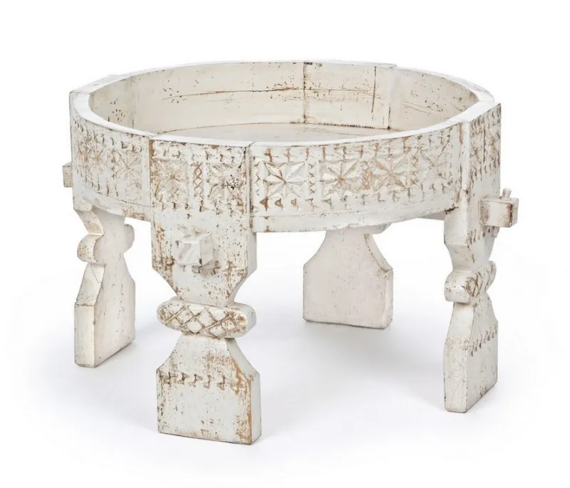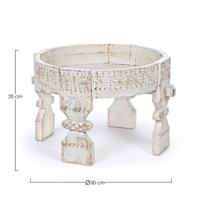 Outlet Bizzotto TAVOLINO IN LEGNO D50 BIANCO – YASIR