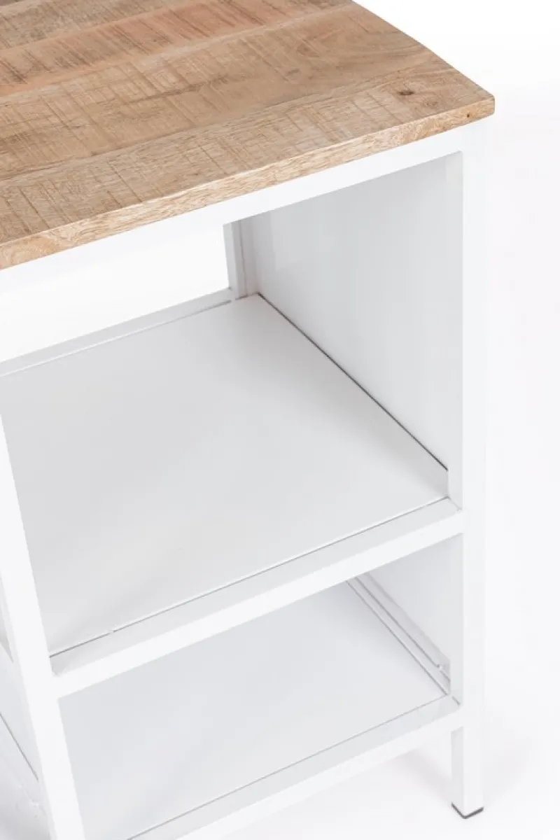STRUTTURA IN ACCIAIO. PIANO IN LEGNO DI MANGO. TRATTANDOSI DI PRODUZIONE ARTIGIANALE OGNI MODELLO PUO’ VARIARE IN PICCOLI PARTICOLARI COSTRUTTIVI. EVENTUALI PICCOLE CREPE O SPACCATURE SONO DA RITENERSI CARATTERISTICHE PROPRIE AL NATURALE LAVORO DI RECUPERO. DA ASSEMBLARE