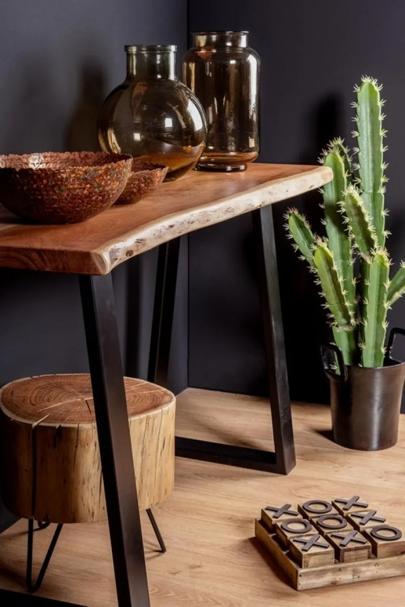 PIANO IN LEGNO DI ACACIA, GAMBE IN ACCIAIO VERNICIATO A POLVERE EPOSSIDICA. FINITURA A BASE DI VERNICE POLIURETANICA. ESSENDO UN PIANO LAVORATO A MANO, LE FORME E LE MISURE DEL LEGNO SONO SOLO INDICATIVE. TUTTI I PRODOTTI SARANNO DIVERSI L’UNO DALL’ALTRO. GAMBE DA ASSEMBLARE.