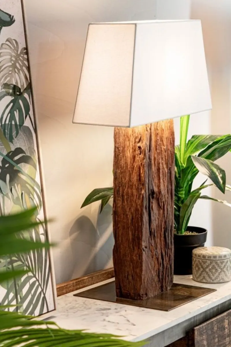 LEGNO DI TEAK RICICLATO, FINITURA A BASE D’ACQUA. PARALUME IN COTONE. BASE IN ACCIAIO. FORMA E MISURA SONO INDICATIVI. TUTTI I PRODOTTI SARANNO DIVERSI L’UNO DALL’ALTRO. LAMP: E27 MAX 60W, E27 11W COMP. FLUOR. INTEGR. RISP. EN., E27 42W ALOG. RISP. EN. LAMPADINA/E NON INCLUSA/E. LUNGHEZZA CAVO: 1.9 MT. DISTANZA TRA LAMPADA E INTERRUTTORE: 25 CM. DA ASSEMBLARE
