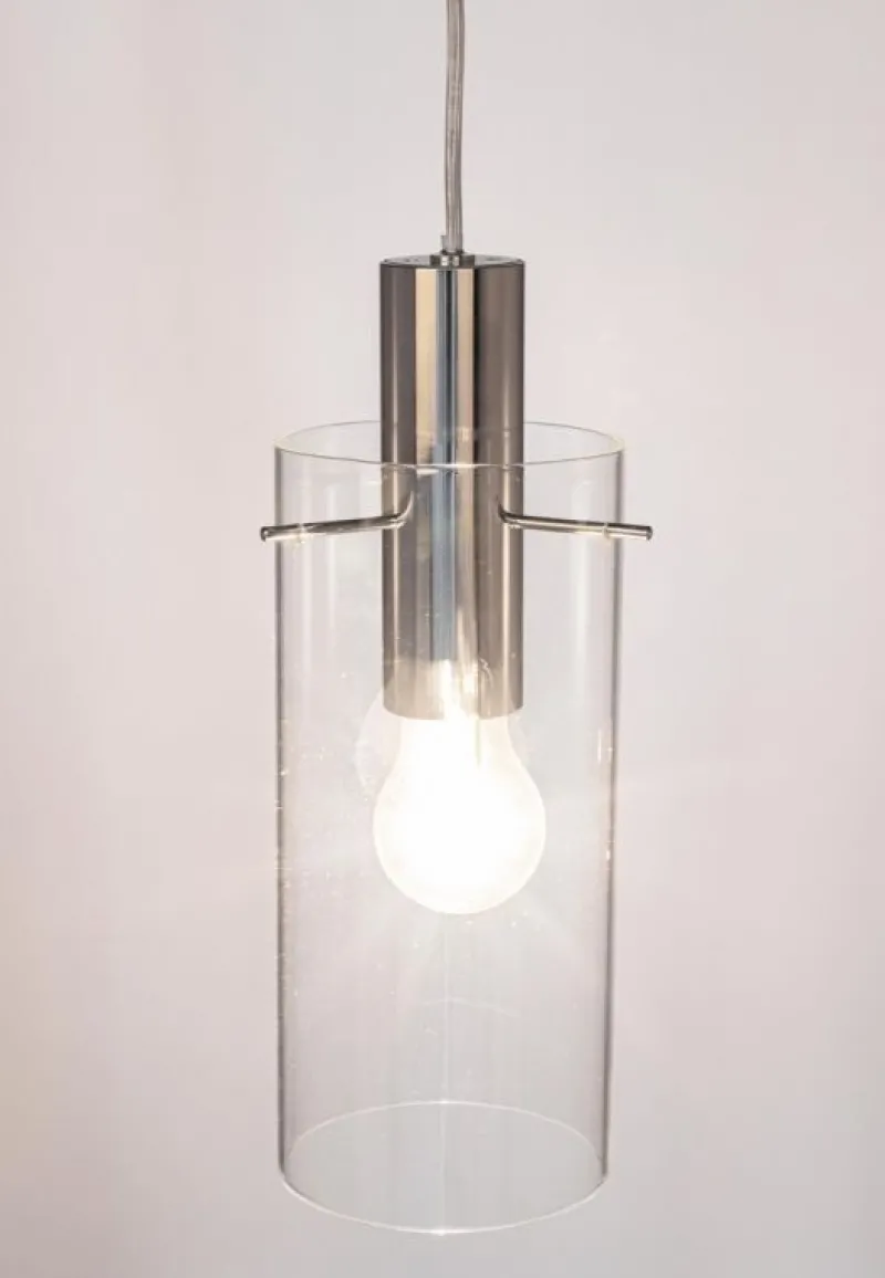 ACCIAIO FINITURA CROMATA E ALLUMINIO. PARALUME IN VETRO. LAMP. E27 MAX 60W, E27 11W COMP. FLUOR INTEGR. RISP. EN. , E27 42W ALOG. RISP. EN. LAMPADINA/E NON INCLUSA/E. LUNGHEZZA CAVO: 1.2 MT. DA ASSEMBLARE