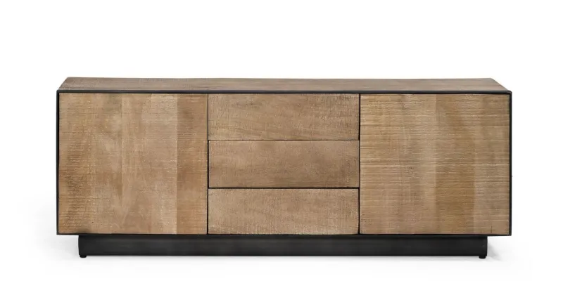 STRUTTURA IN LEGNO DI MANGO, FINITURA FINALE CON VERNICE A BASE D’ACQUA. PROFILO FRONTALE E GAMBE IN ACCIAIO VERNICIATO A POLVERE EPOSSIDICA. ANTE E CASSETTI CON CERNIERE CON CHIUSURA AMMORTIZZATA. VANO PORTA COMPRENSIVO DI MENSOLA.