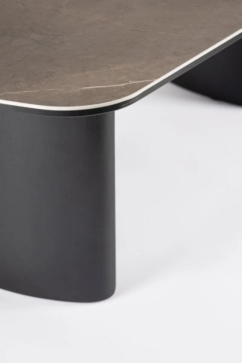 STRUTTURA E GAMBE IN MDF IMPIALLACCIATO LEGNO DI QUERCIA. FINITURA A BASE DI VERNICE POLIURETANICA. PIANO IN CERAMICA CON SUPPORTO IN VETRO TEMPERATO. GAMBE DA ASSEMBLARE.