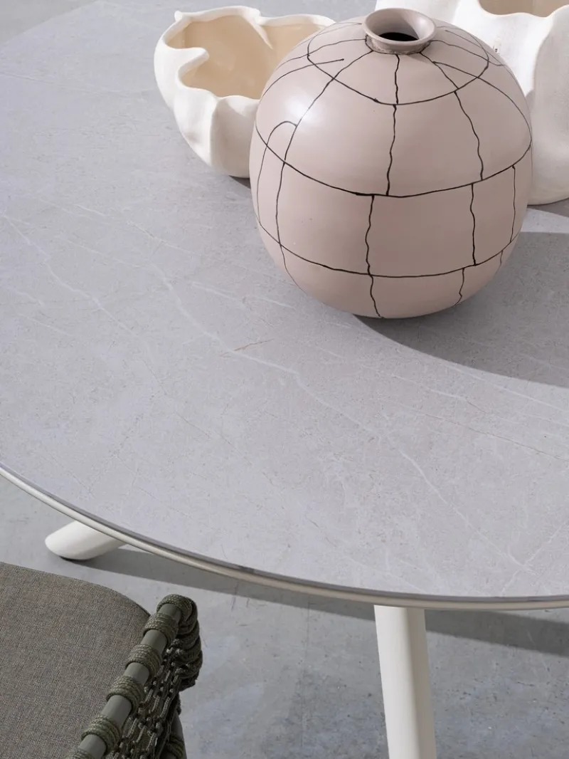 STRUTTURA IN ALLUMINIO VERNICIATA A POLVERE (POLIESTERE). PIANO IN PIETRA SINTERIZZATA (PIETRA NATURALE LAVORATA AD ELEVATE TEMPERATURE)(SPESSORE 11MM). VITERIA IN ACCIAIO INOSSIDABILE. PIEDINI REGOLABILI. GAMBE DA ASSEMBLARE.