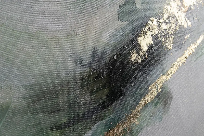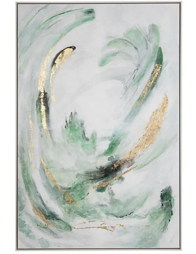 STAMPA DIPINTA A MANO SU TELA CON APPLICAZIONI FOGLI DORATI, STRUTTURA IN LEGNO DI PINO. CORNICE IN PLASTICA.