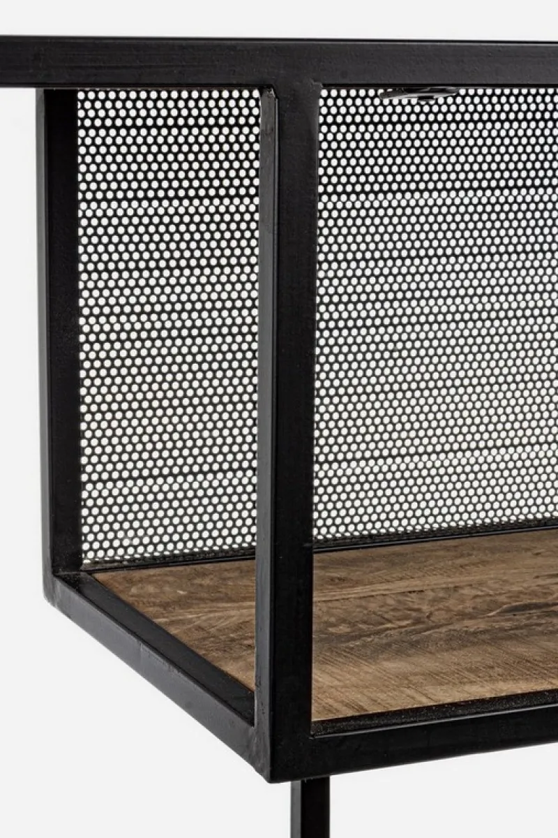 STRUTTURA IN ACCIAIO VERNICIATA A POLVERE EPOSSIDICA. RIPIANI IN LEGNO DI MANGO CON FINITURA A BASE D’ACQUA.