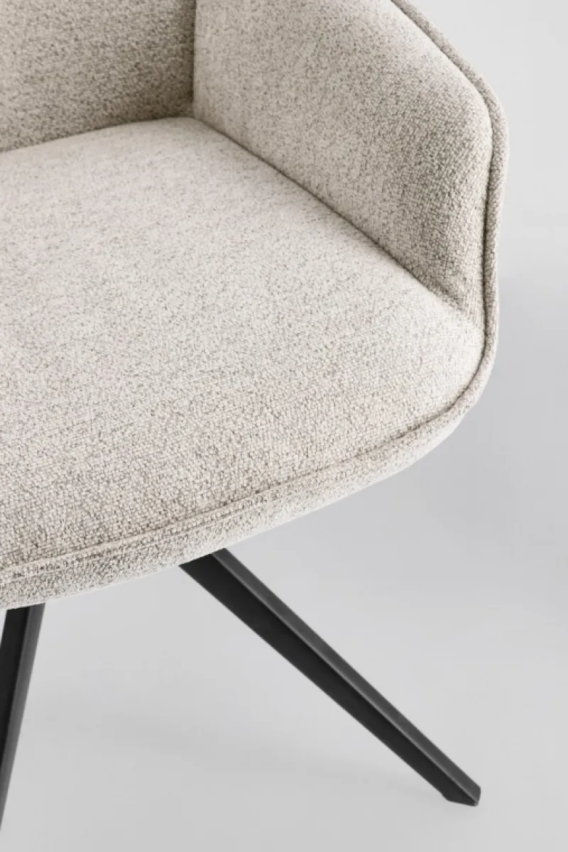 SEDUTA IN COMPENSATO CON IMBOTTITURA IN SCHIUMA POLIURETANICA. RIVESTIMENTO IN 100% POLIESTERE. GIREVOLE 360° CON MECCANISMO DI RITORNO. GAMBE IN ACCIAIO VERNICIATE A POLVERE EPOSSIDICA. GAMBE DA ASSEMBLARE.