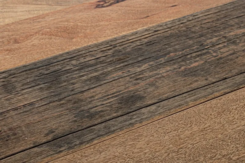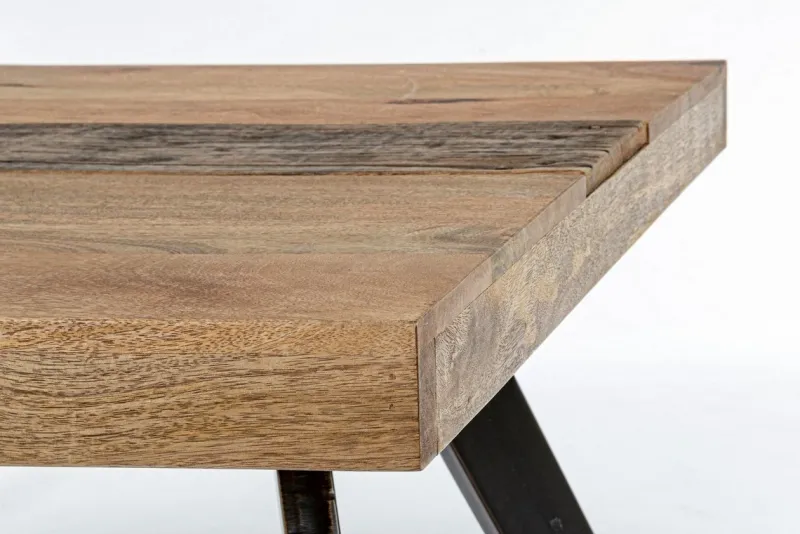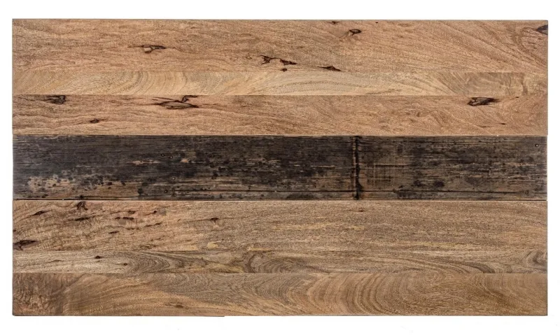 GAMBE IN ACCIAIO CON PIEDINI REGOLABILI, PIANO IN LEGNO DI MANGO E LEGNO RICICLATO. FINITURA ACRILICA PROTETTIVA. IL PRODOTTO IN LEGNO RICICLATO È CARATTERIZZATO DALLA PRESENZA DI TASSELLI IN LEGNO DI DIVERSE SPECIE E COLORE. EVENTUALI FESSURE, CREPE O IMPERFEZIONI, CHE POSSONO GENERARSI ANCHE NEL CORSO DEL TEMPO, SONO CARATTERISTICHE DI QUESTO MATERIALE E