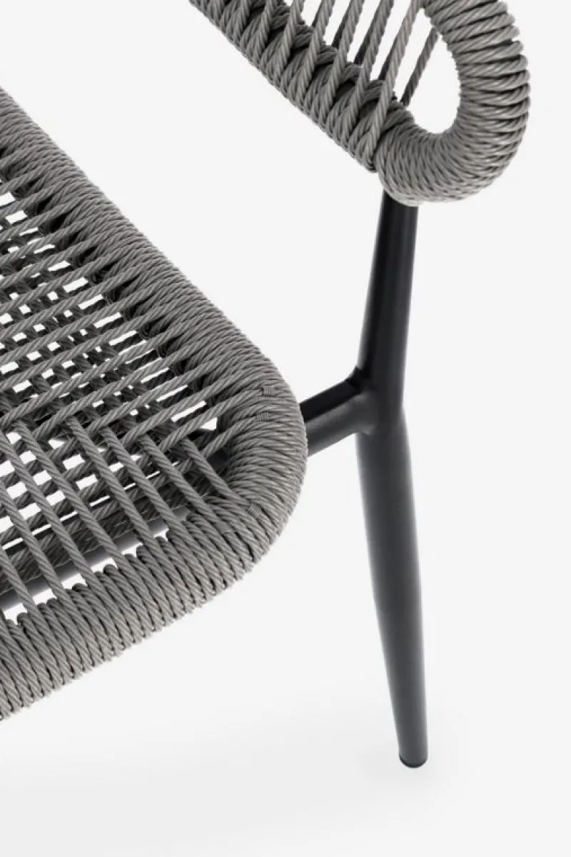 STRUTTURA IN ALLUMINIO, VERNICIATA A POLVERE (POLIESTERE), INTRECCIO IN FIBRA SINTETICA (TWISTED). IMPILABILE.