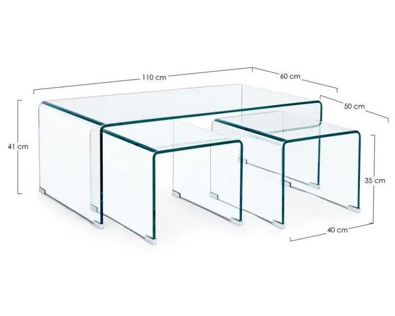 Bizzotto SET3 TAVOLINI IN VETRO -IRIDE