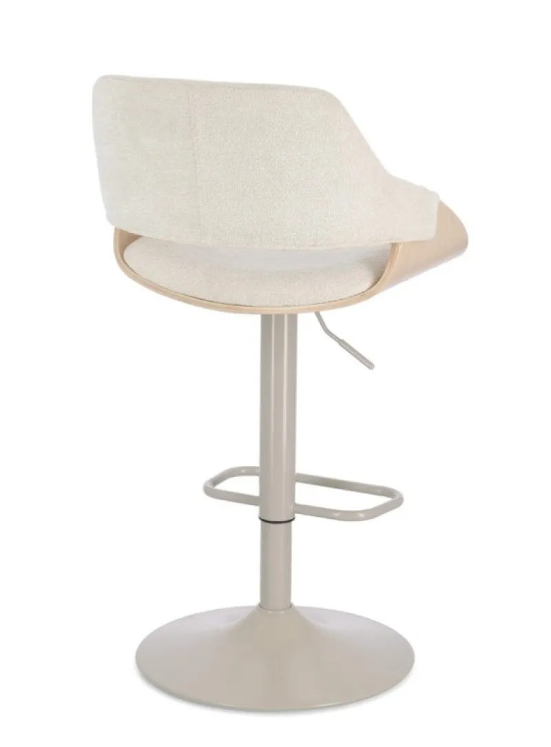 SEDUTA IN COMPENSATO IMPIALLACCIATO LEGNO DI PIOPPO CON IMBOTTITURA IN SCHIUMA POLIURETANICA. RIVESTIMENTO IN 100% POLIESTERE. SEDUTA GIREVOLE 360°. BASE IN ACCIAIO VERNICIATA A POLVERE EPOSSIDICA. ALTEZZA REGOLABILE CON SISTEMA A GAS. BASE DA ASSEMBLARE.