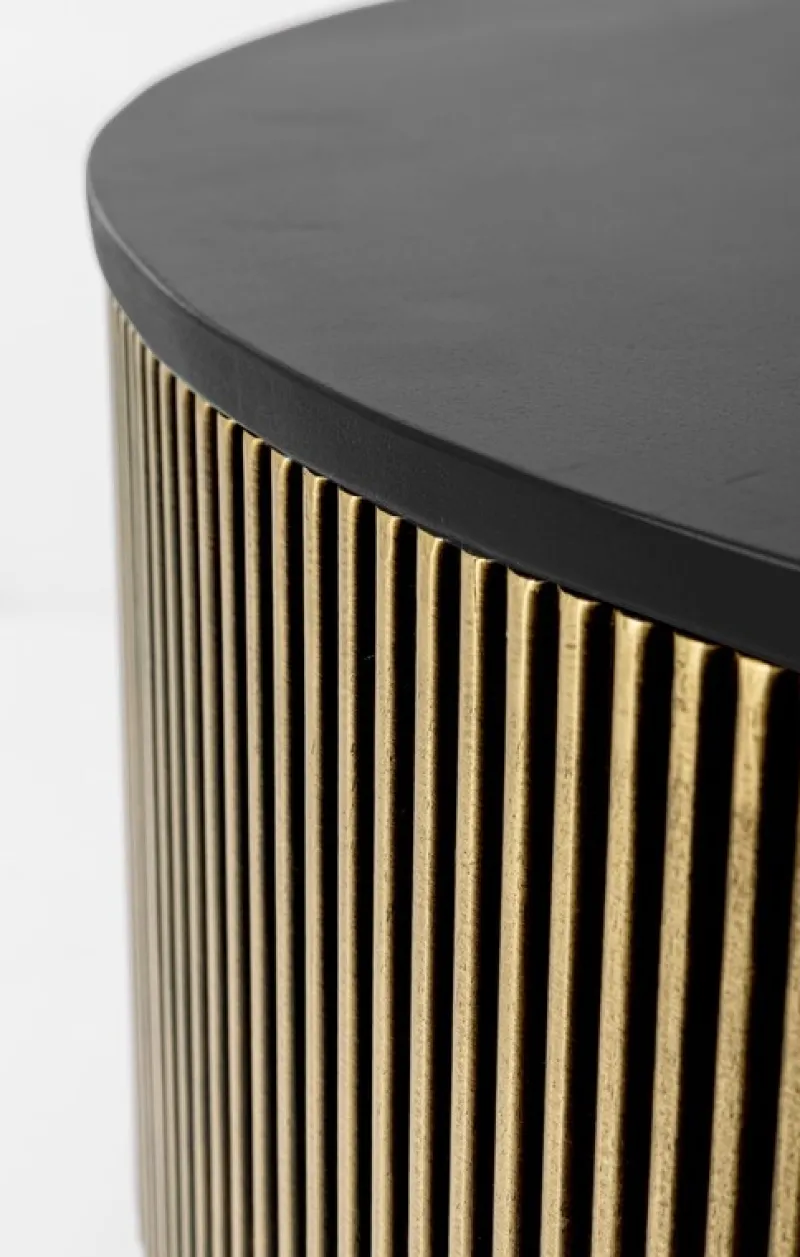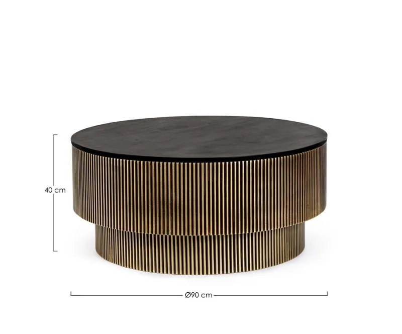 STRUTTURA IN MDF CON RIVESTIMENTO IN OTTONE ANTICATO, PIANO IN LEGNO DI MANGO. FINITURA CON VERNICE A BASE DI NITROCELLULOSA. BASE DA ASSEMBLARE.