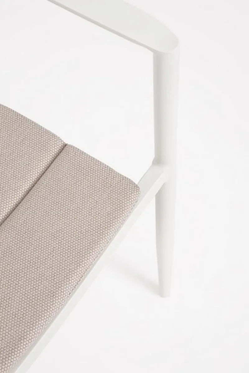 STRUTTURA IN ALLUMINIO VERNICIATO A POLVERE (POLIESTERE). CUSCINO SEDUTA NON SFODERABILE CON TESSUTO IDROREPELLENTE OLEFIN (100% POLIPROPILENE). IMPILABILE.