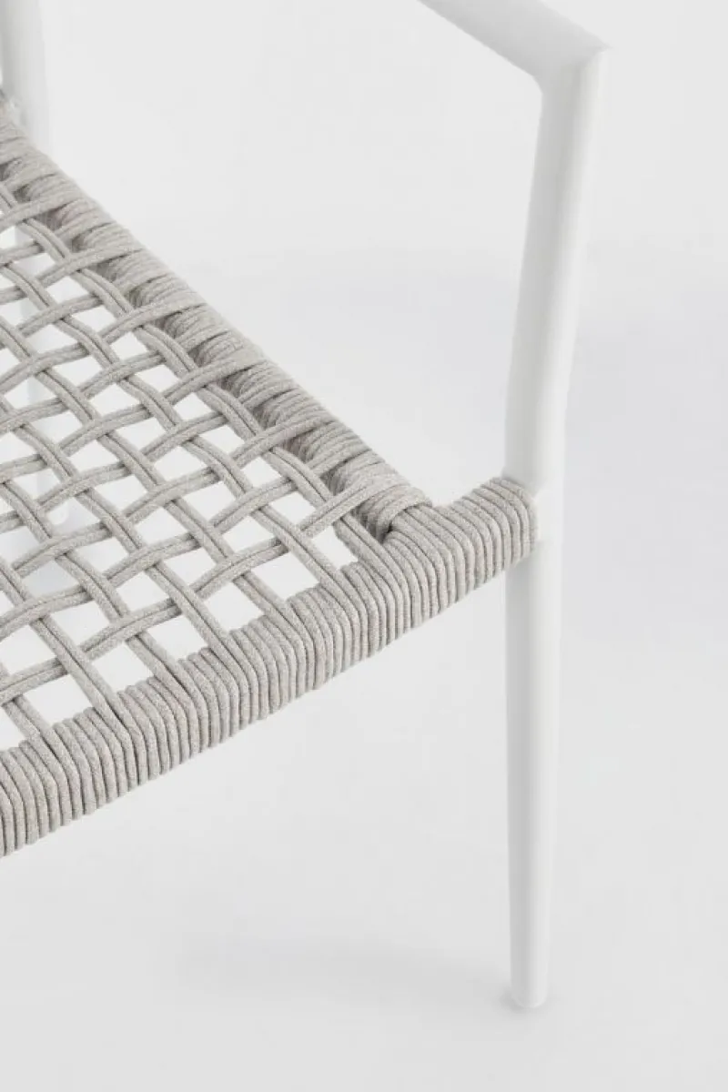 STRUTTURA IN ALLUMINIO VERNICIATA A POLVERE (POLIESTERE). INTRECCIO PER ESTERNO IN CORDA POLIESTERE. IMBALLO SENZA CARTONE.
