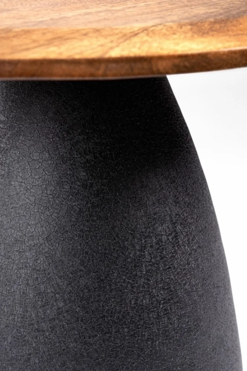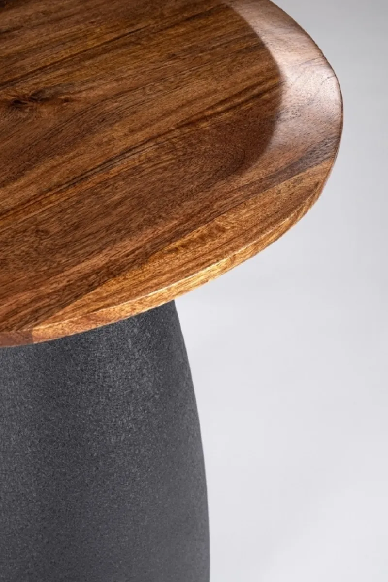 TOP IN LEGNO DI MANGO CON FORMA IRREGOLARE,CON VERNICIATURA A BASE D’ACQUA E FINITURA FINALE A BASE DI NITROCELLULOSA. BASE IN ACCIAIO VERNICIATO A POLVERE EPOSSIDICA EFFETTO MATERICO.BASE DA ASSEMBLARE