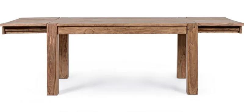LEGNO SHEESHAM. FINITURA NATURALE. 2 PROLUNGHE INTEGRATE (APERTURA A FARFALLA) DA 50CM. GAMBE DA ASSEMBLARE.