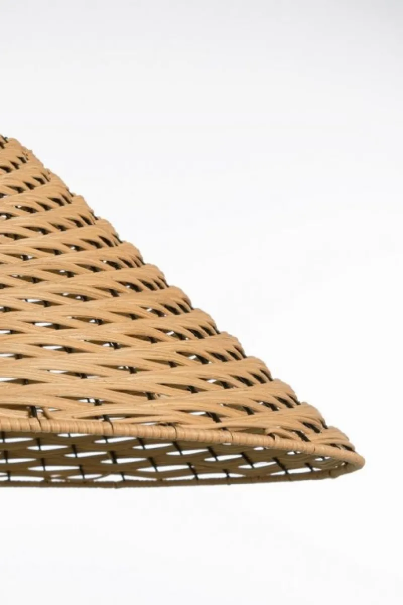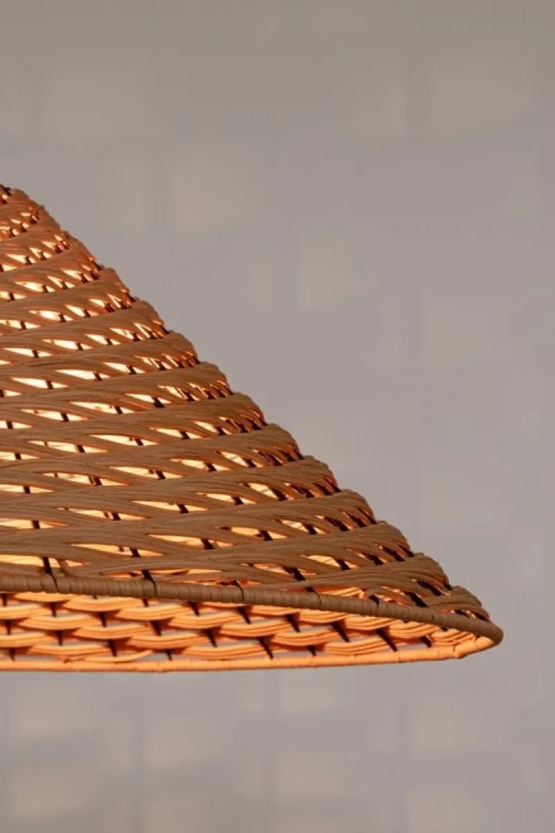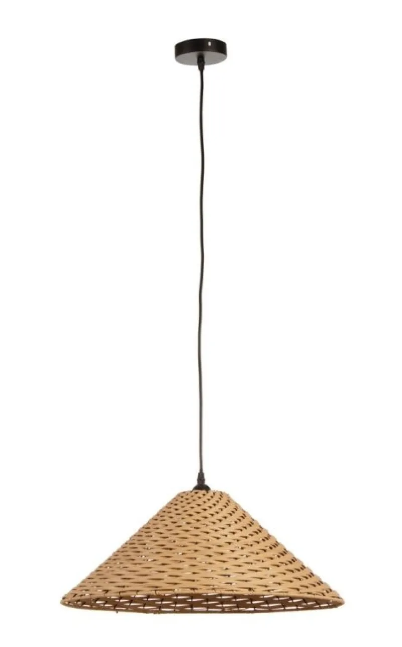 METALLO E RATTAN. LUNGHEZZA FILO 120 CM. LAMP. E27 MAX 40W, E27 8-11W COMP. FLUOR. INTEGR. RISP. EN., E27 28W ALOG. RISP. EN. LAMPADINA NON INCLUSA. IP20.