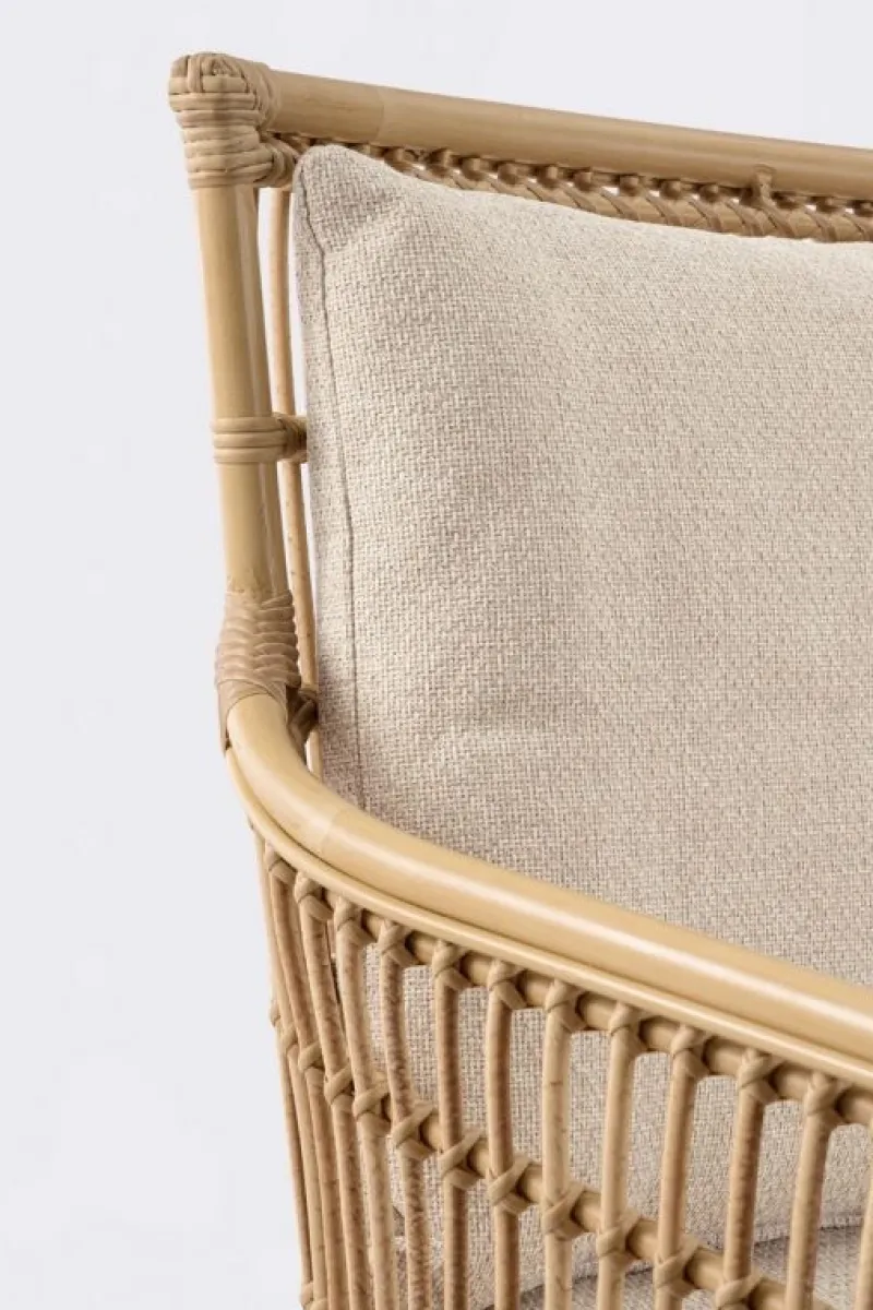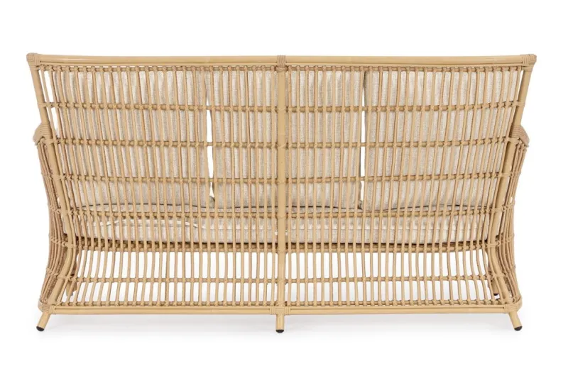 STRUTTURA IN ALLUMINIO VERNICIATO A POLVERE (POLIESTERE) CON EFFETTO RATTAN, INTRECCIO IN FIBRA SINTETICA (TONDO 10MM).CUSCINI SFODERABILI CON TESSUTO IDROREPELLENTE SUNPROOF OLEFIN (100%POLYPROPYLENE). IMBALLO SENZA CARTONE.