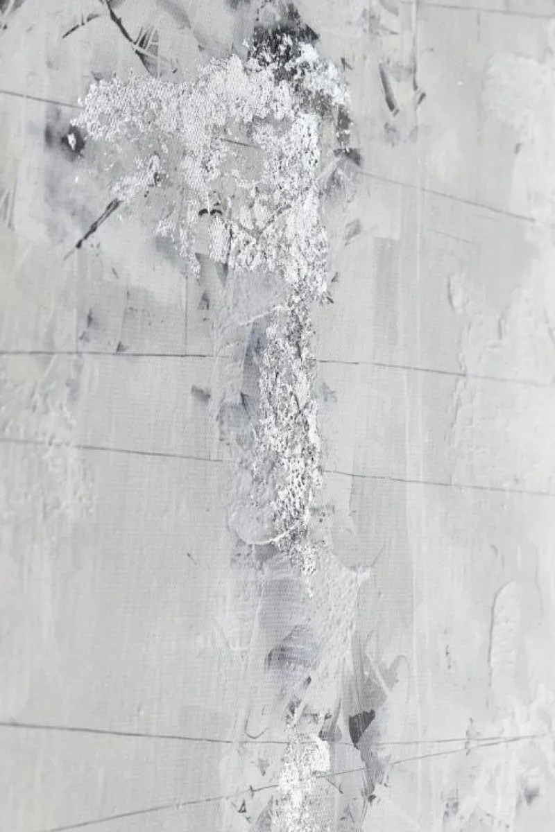 STAMPA SU TELA CON FINITURE FATTE A MANO E CON APPLICAZIONI DI FOGLI DORATI.