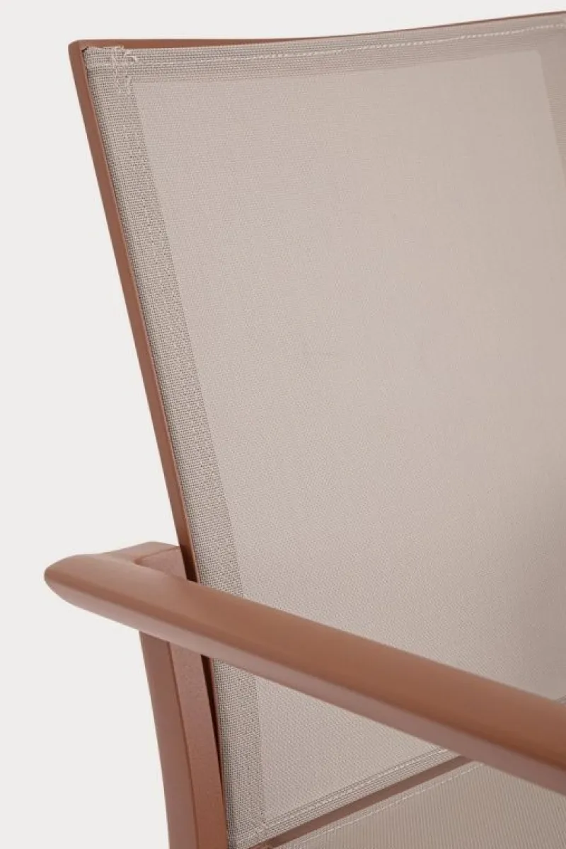 STRUTTURA IN ALLUMINIO, VERNICIATO A POLVERE (POLIESTERE). SEDUTA E SCHIENALE IN TEXTILENE 1X1. IMPILABILE.